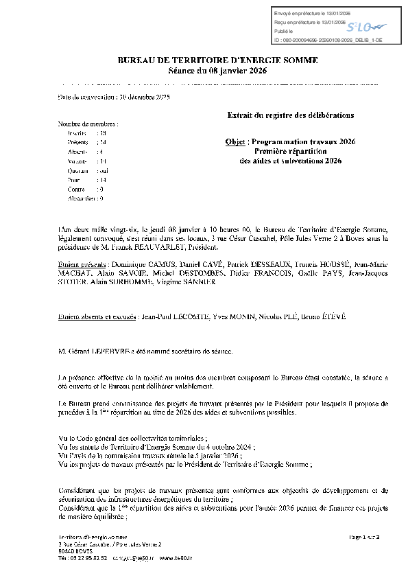 Programme répartition travaux - 1ère répartition 2026