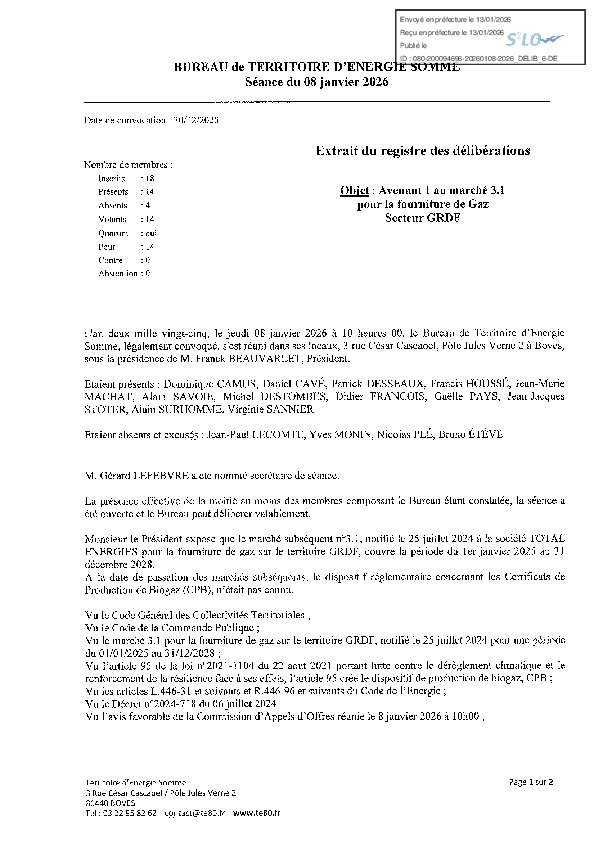 Avenant 1 au marché 3.1 pour la fourniture de gaz total Energies - Secteur GRDF