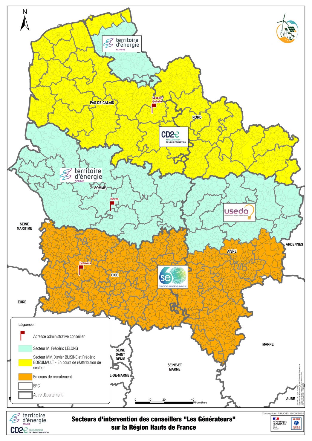 Le 3 juillet 2025, l’Entente Hauts-de-France des syndicats d’énergie (SE60, USEDA, Territoire Énergie Flandre et Territoire d'Energie Somme) a renouvelé son engagement aux côtés de l’ADEME pour poursuivre le dispositif Les Générateurs pendant trois années supplémentaires.
